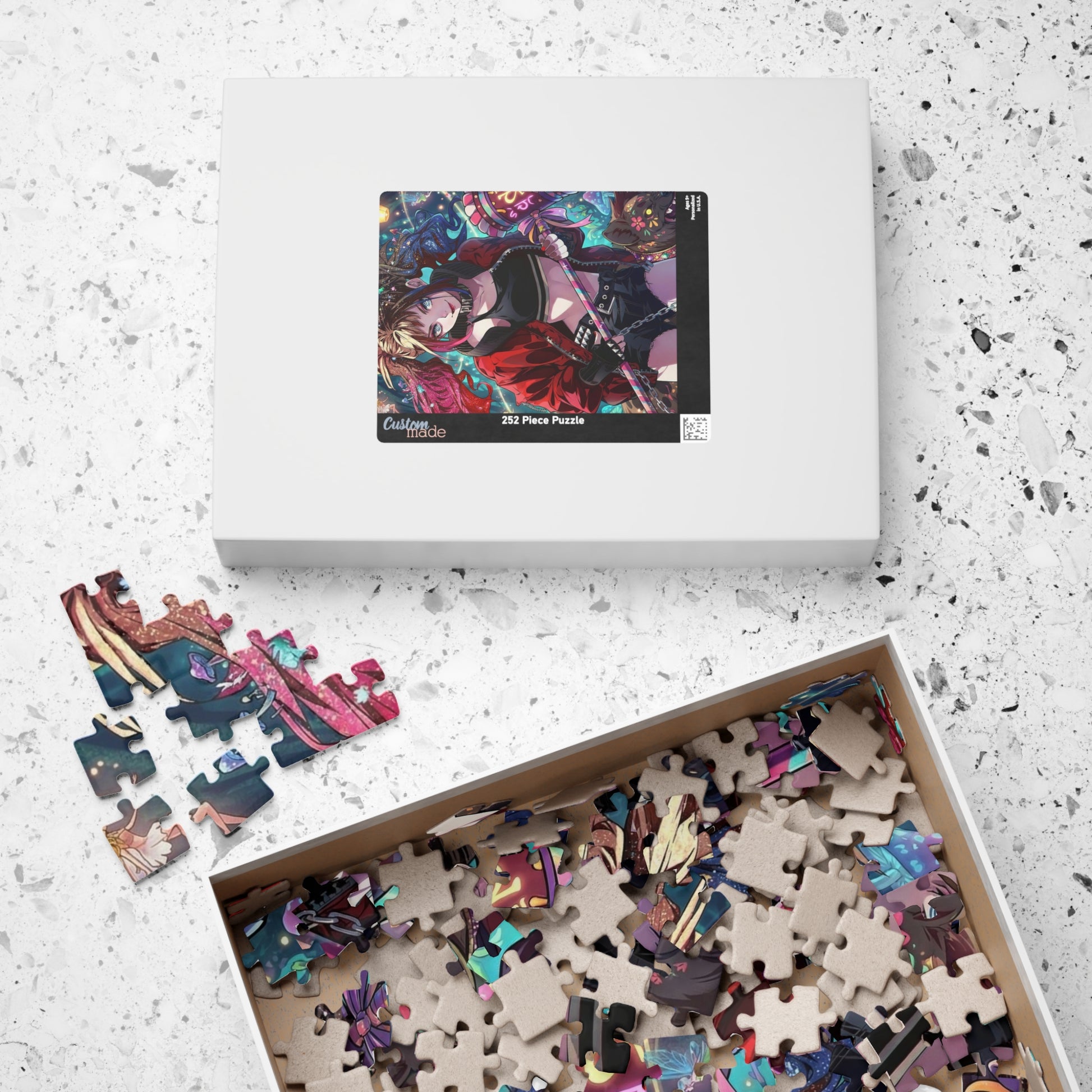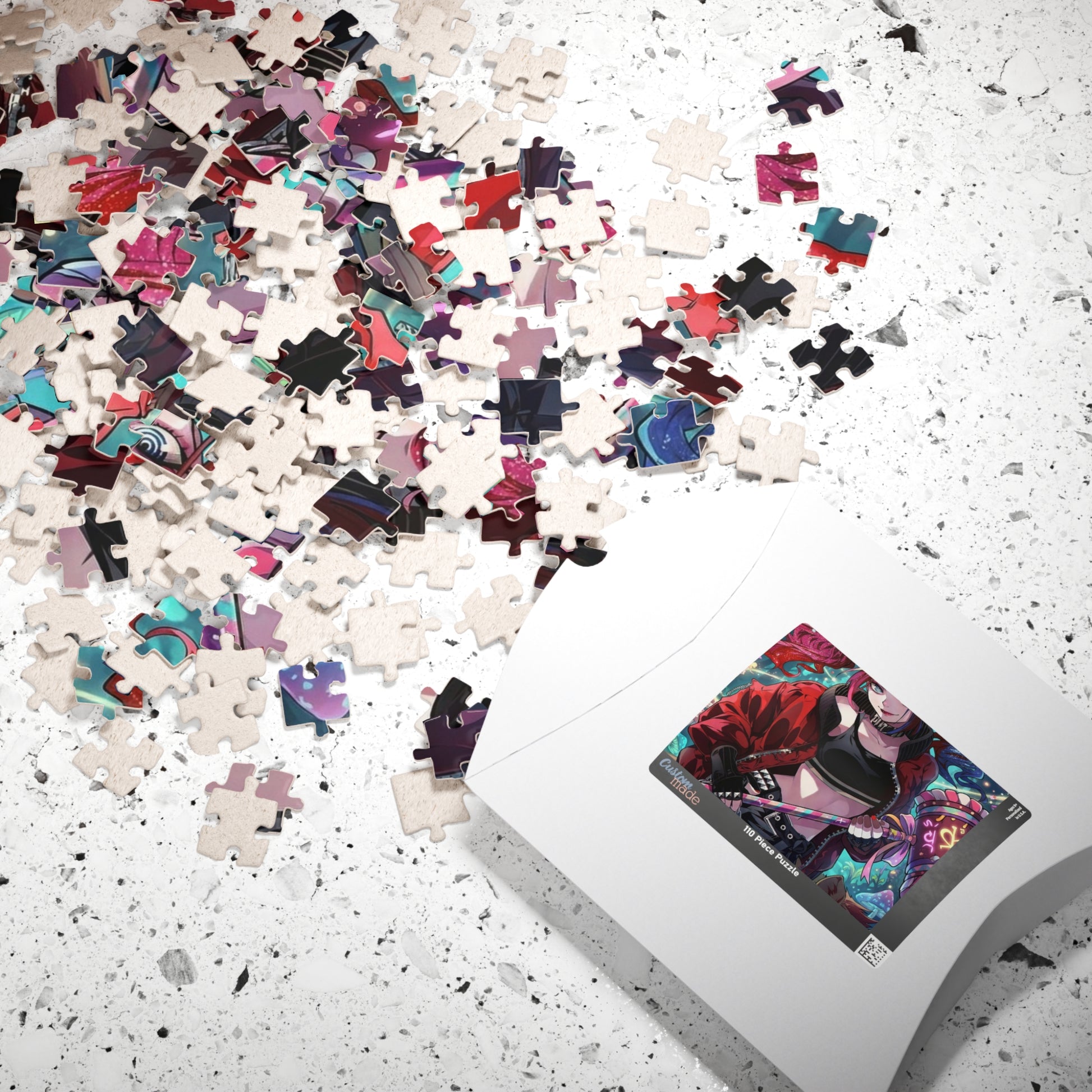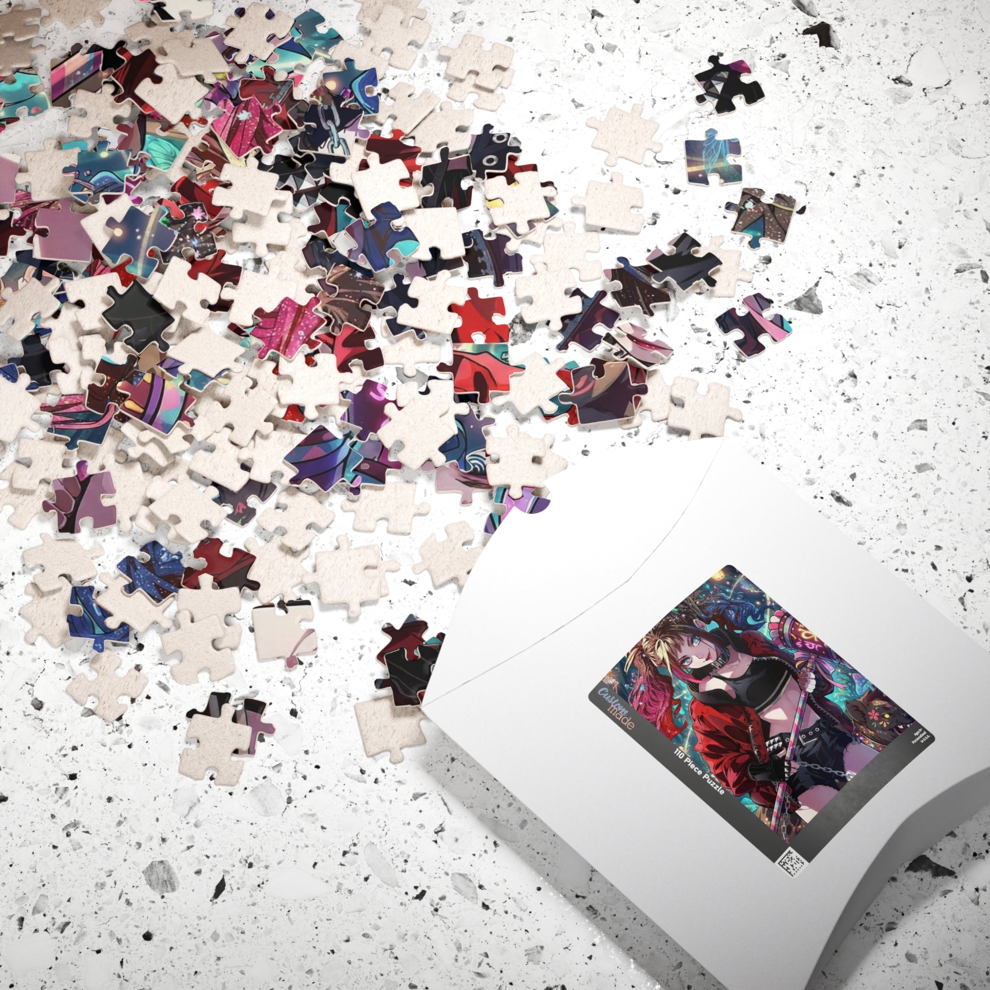 - Paper box with artwork printed on top for easy storage and display